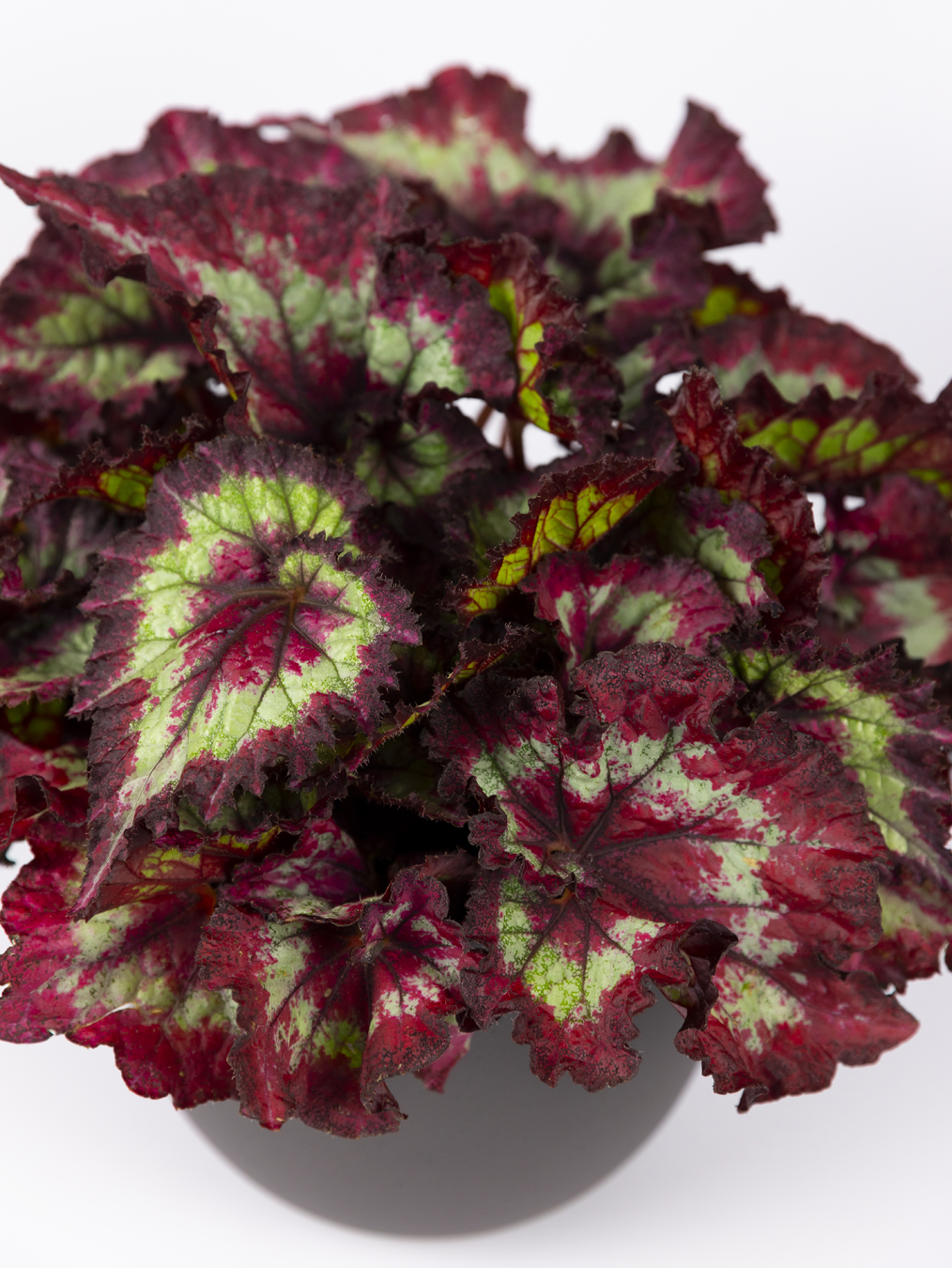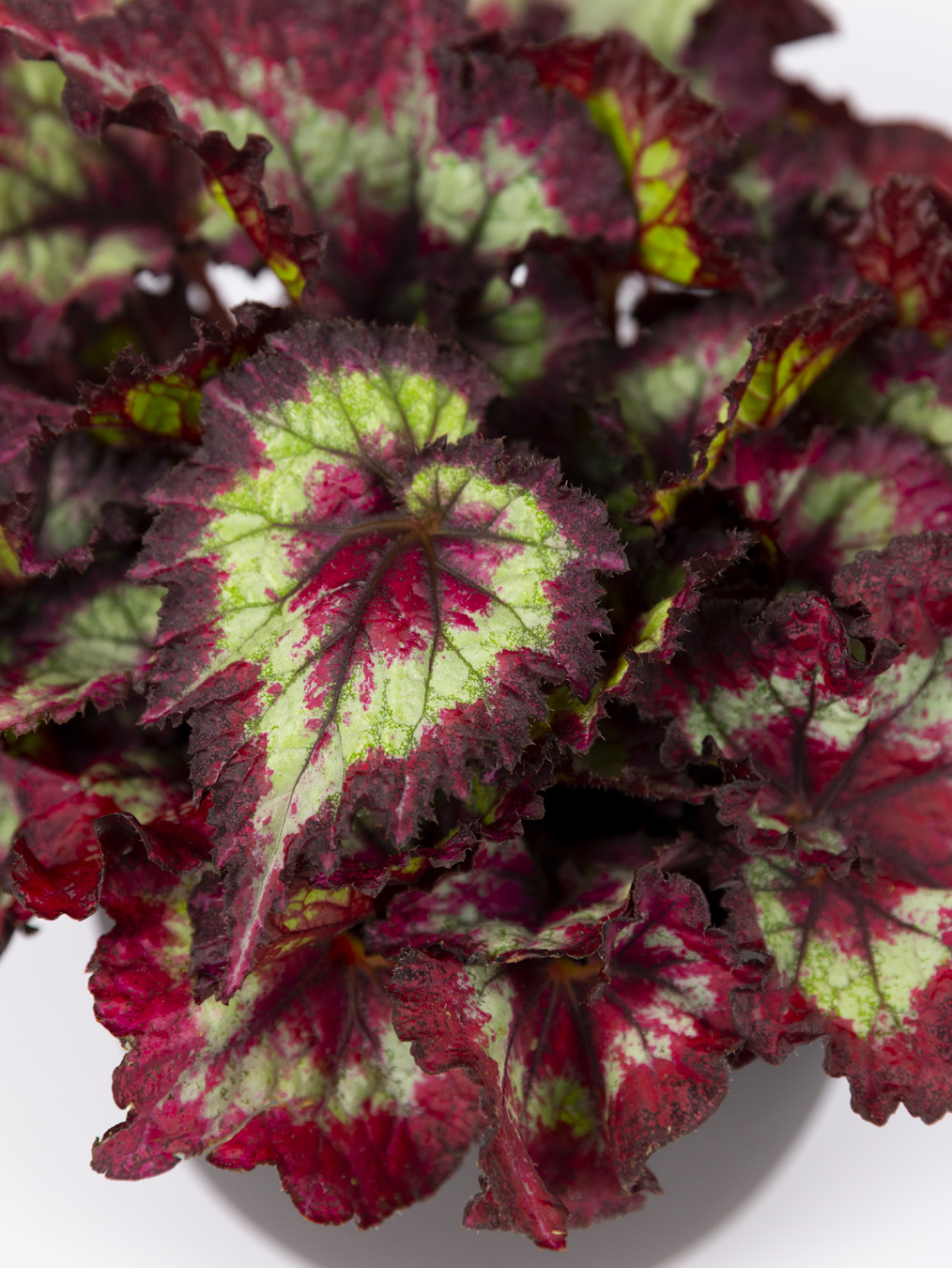 As folhas da Begonia rex fazem-nos acreditar que fazem parte de uma arte indiscritível.